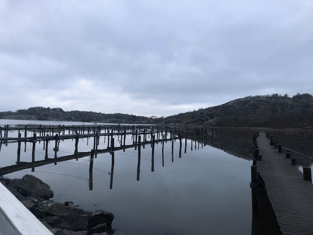 Vi gick ut på långa bryggan men oj oj det var halt… efter ett tiotal meter kom vi fram till en bänk. Den var tyvärr upptagen. Vi såg en stig bakom så vi följde stigen, vem vet kanske kunde man gå runt ”ön”.