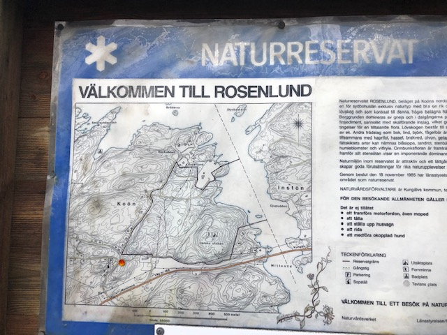 Ett av mina favorit ställen är skogs stigarna runt Rosenlunds naturreservat som ligger på Koön. För att komma dit kör man in vid ställverket och upp för backen. Där finns det parkering, om det är fullt kan man följa vägen så finns det ytterligare en parkering.