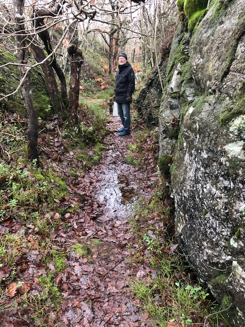 Slingan är olika stigar över stock och sten och på flera ställen har man möjlighet att välja olika vägar. När vi gick där 19/12-20 var det hyfsat blött och vid flera ställen var det svårt att passera. Vid ett ställe gick vi genom vatten… Men har man en sko med rejäl sula eller ännu bättre stövlar så klarar man sig även genom de blöta passagen.