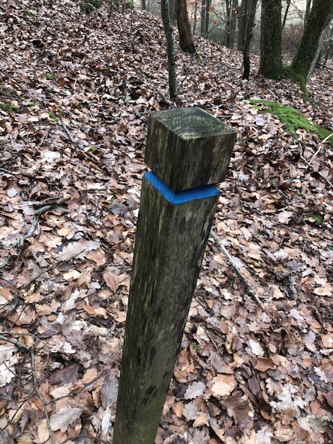 Vi gick stigen fram som är hyfsad bred och väl underhållen. Efter en liten bit kom ett bord med bänkar, här satt redan några och fikade så vi gick vidare. Det kändes lite knepigt att gå på den breda stigen men tillslut visade en markering att vi skulle vika av mot höger och upp för en lång backe.