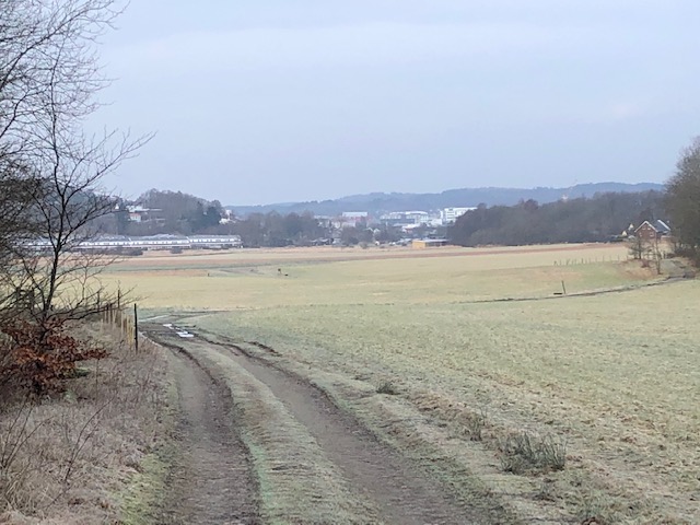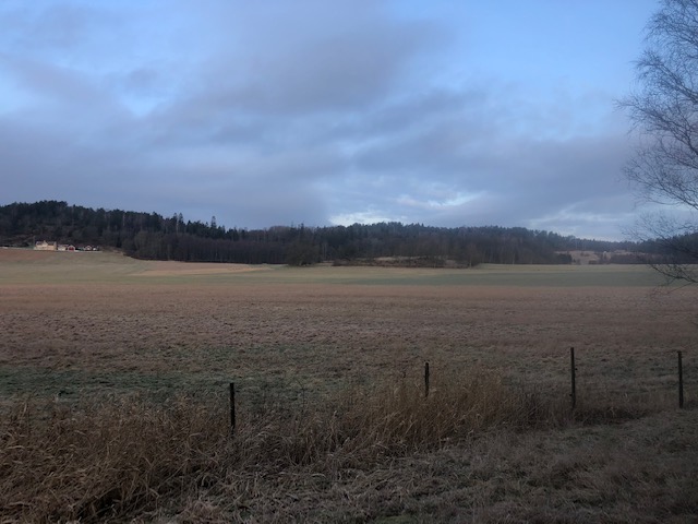 När man kommit ut från skogsstigen kommer man ut på åkerängar, det går en stig bort från skogen. Fortsätt stigen så kommer man till sist ut på vägen.